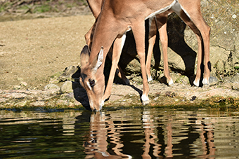 Ebenfalls staubtrocken aber um einige Dimensionen kleiner und blitzschnell bewegt es sich im Gehege der Erdmännchen